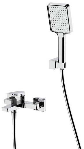 - Оснащение: душевой шланг ПВХ, ручной душ, настенный держатель ручного душа, смеситель.