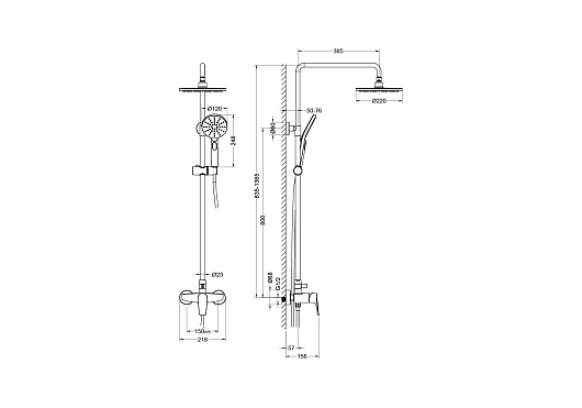 - Размер верхнего душа: 22 см.