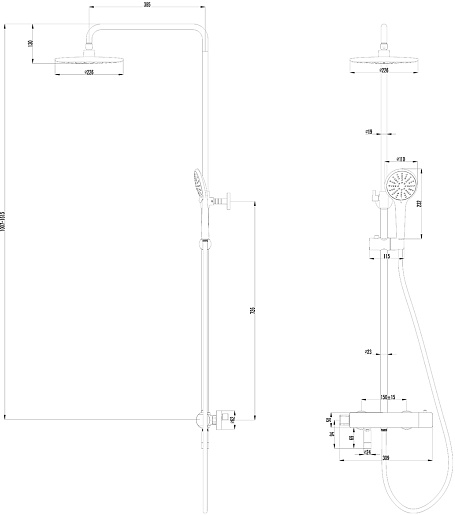 - Размер верхнего душа: 226 мм.