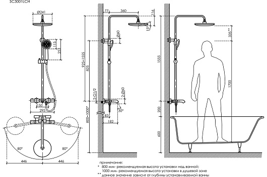 Sancos Душевая система Game с изливом и термостатом хром SC3001LCH