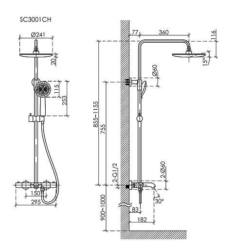 Sancos Душевая система Game с термостатическим смесителем хром SC3001CH
