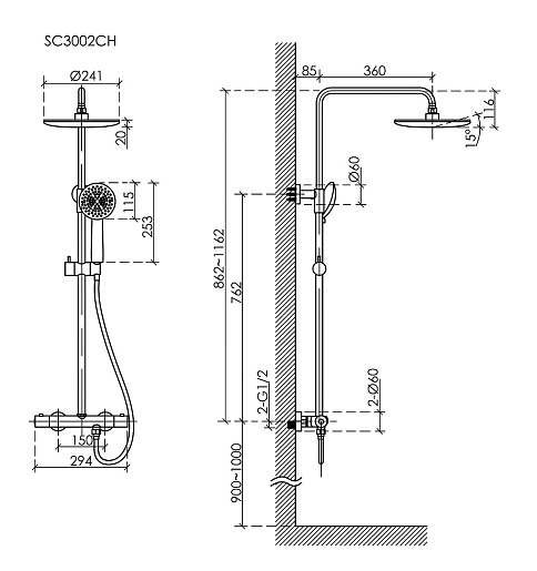 Sancos Душевая система Game с термостатическим смесителем хром SC3002CH