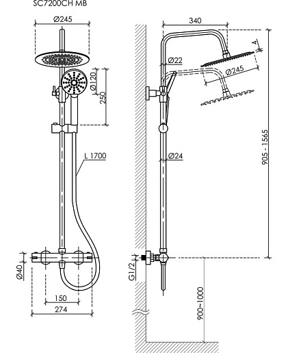 - Размер верхнего душа: 24.5 см.
