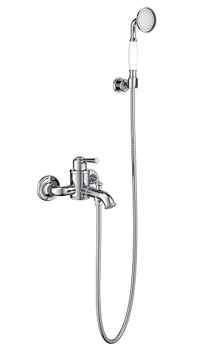 - Оснащение: душевой шланг / душевая лейка / настенный держатель.