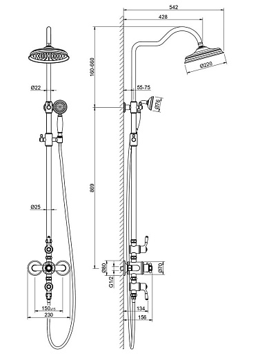 Aquatek Душевая система Классик AQ2563PG с термостатом, полированное золото