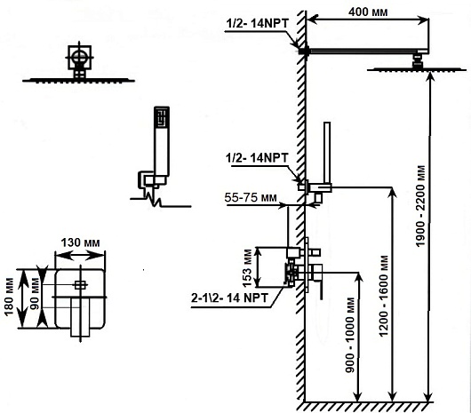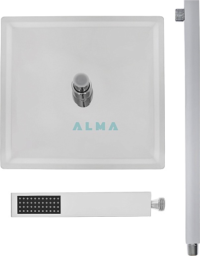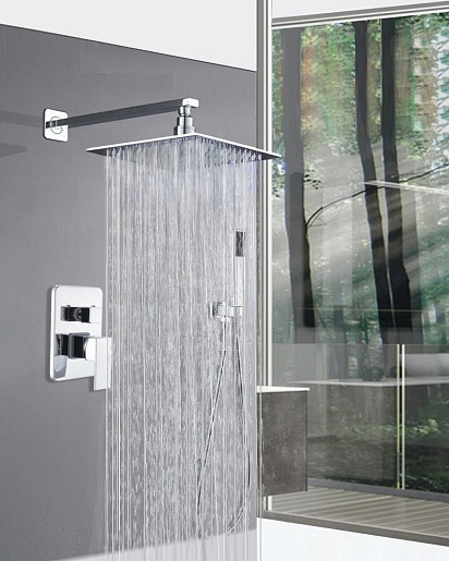 - Верхний душ: нержавеющая сталь, 25х25 см.