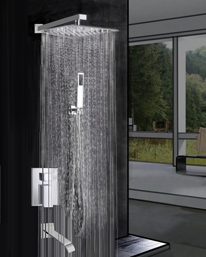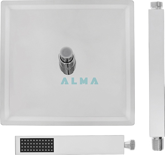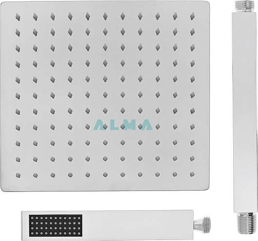 - Верхний душ: нержавеющая сталь, 25x25 см.