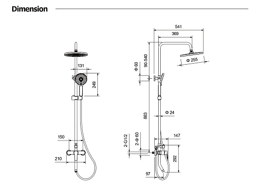 - Размер верхнего душа: 25.5 см.