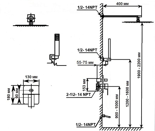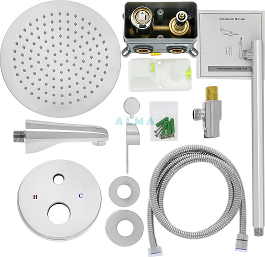 - Верхний душ: нержавеющая сталь, диаметр 25 см.