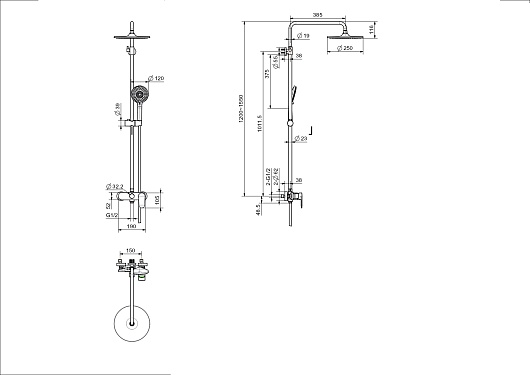 - Размер верхнего душа: 25 см.