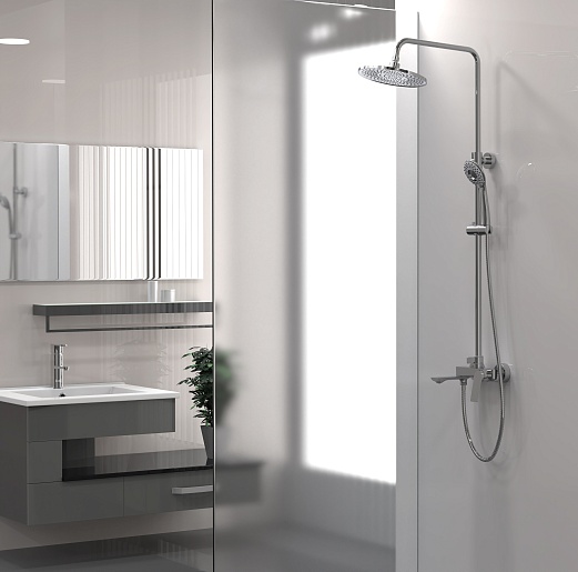 - Оснащение-верхний душ, держатель ручного душа, лейка ручного душа, смеситель, шланг для душа, штанга для душа.