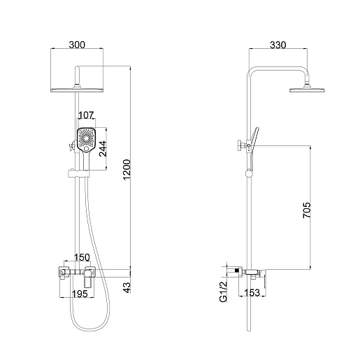 - Оснащение-верхний душ, держатель ручного душа, лейка ручного душа, смеситель, шланг для душа, штанга для душа.