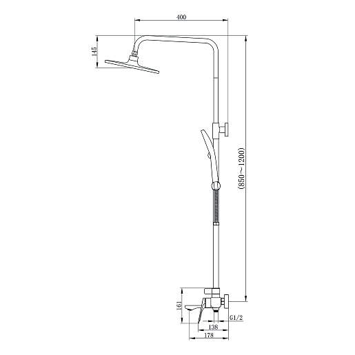 - Оснащение-верхний душ, держатель ручного душа, лейка ручного душа, смеситель, шланг для душа, штанга для душа.