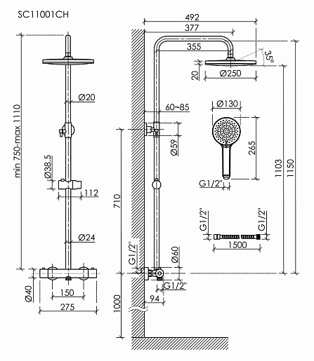 Sancos Душевая система Teo с термостатом хром SC11001CH