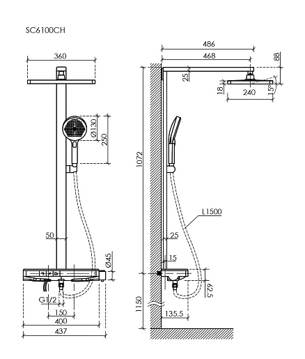 Sancos Душевая система Vos с термостатическим смесителем хром SC6100CH