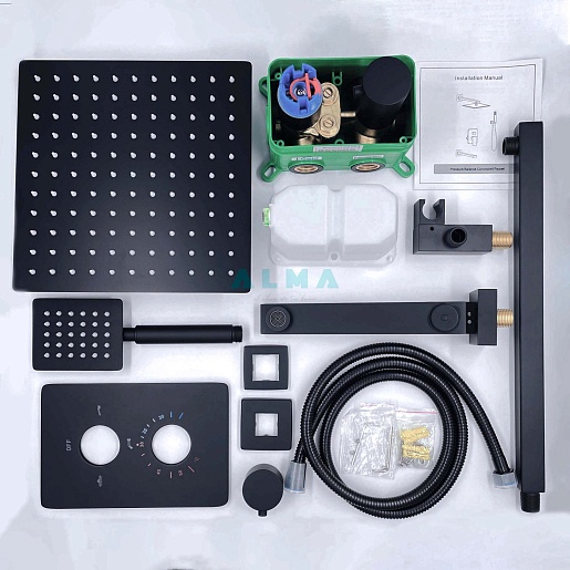 ALMAes Душевая система Weber TVZ-0808 с термостатом черная матовая