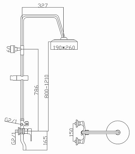 - Размер верхнего душа: 26 см.- Длина излива: 16.5 см.