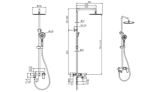 Aquatek Душевая стойка AQ2040MB матовая черная