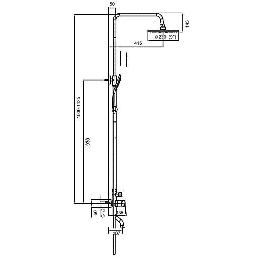 - Вылет верхнего душа: 41.5 см.