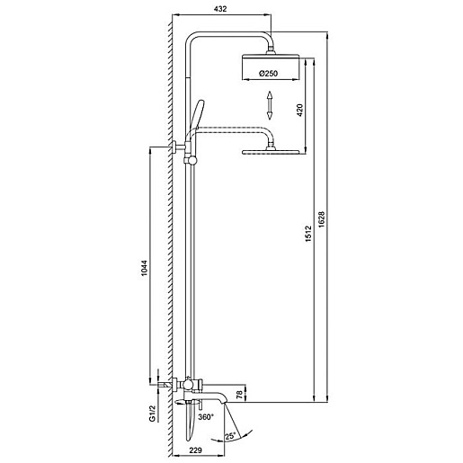 - Размер верхнего душа: 25 см.