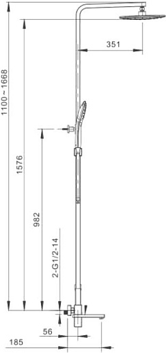 - Вылет верхнего душа: 40.7 см.