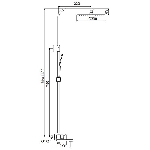 - Размер верхнего душа: 30 см.