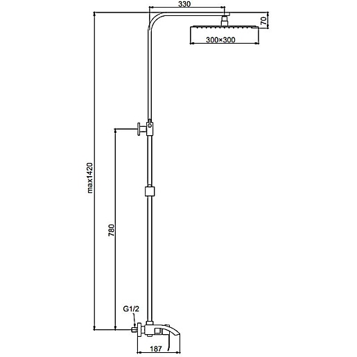 - Размер верхнего душа: 30 см.