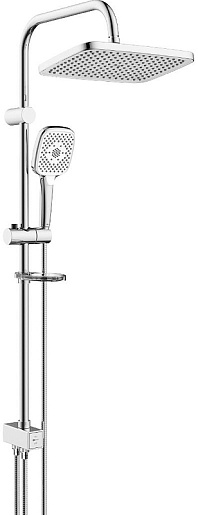 Комплектация: душевая штанга, шланг, душевая лейка, держатель лейки, верхний душ, мыльница.