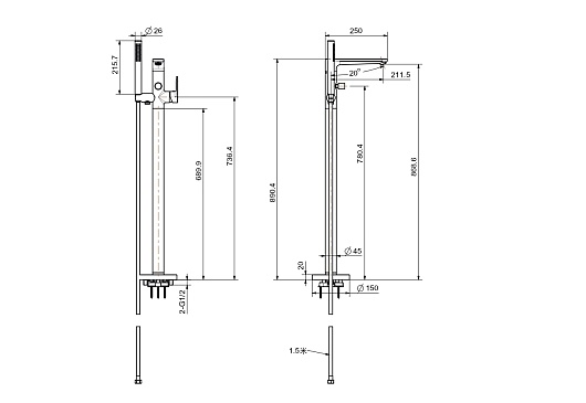 - Длина шланга: 150 см.
