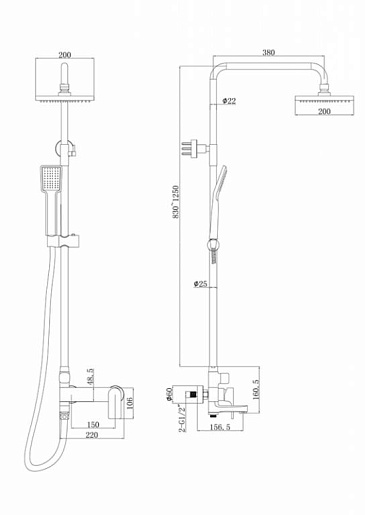 - Вылет верхнего душа: 40 см.