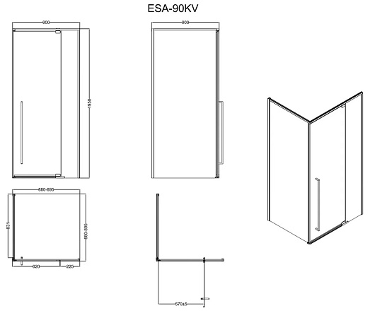 Esbano Душевое ограждение ESA-90KV-B 90/90