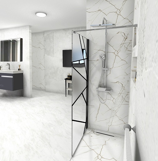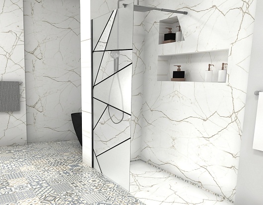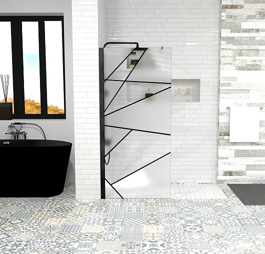 Душевая перегородка Ceruttispa Pick T90B профиль черный стекло матовое/прозрачное с рисунком - арт. 10378.