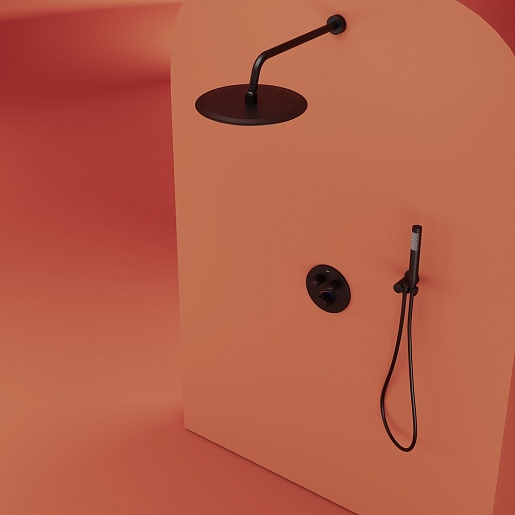 - Состав комплекта: верхний душ, душевой гарнитур, смеситель для душа, шланговое подключение.