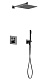 - Состав комплекта: верхний душ, душевой гарнитур, смеситель для ванны с душем, настенный держатель, шланговое подключение.