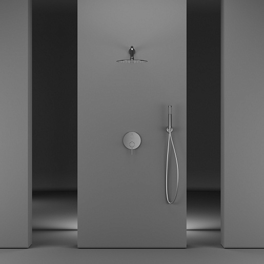 - Состав комплекта: верхний душ, душевой гарнитур, смеситель для душа, шланговое подключение.