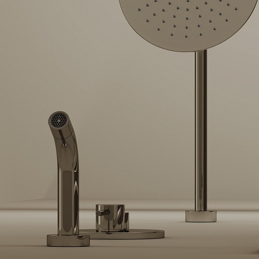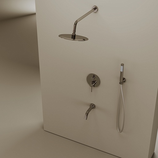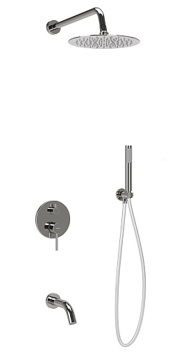 - Состав комплекта: верхний душ, душевой гарнитур, излив, смеситель для ванны с душем, шланговое подключение.