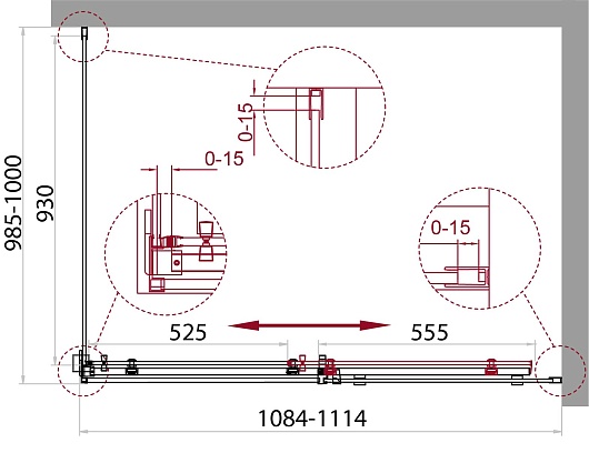 - Стекло 8 мм. C (прозрачное). Профиль Cr (Хром), Nero (Чёрный).