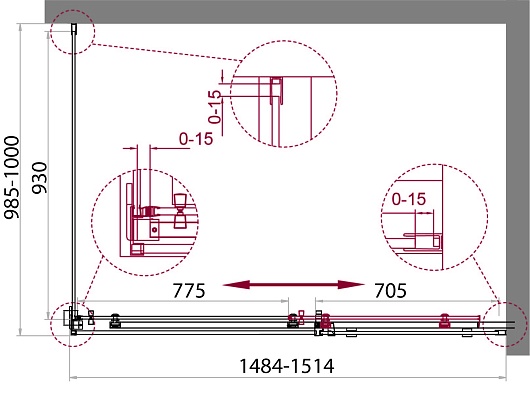 - Стекло 8 мм. C (прозрачное). Профиль Cr (Хром), Nero (Чёрный).