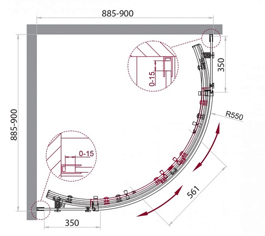 - Поддон: тип R (радиус 550), поддон приобретается отдельно.