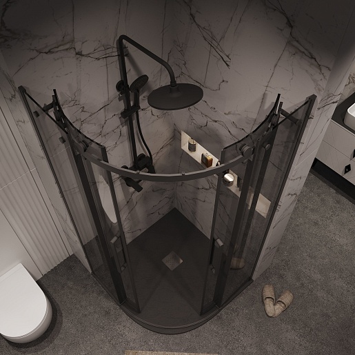 Grossman Душевой уголок Classic 90x90x195 четверть круга профиль черный матовый стекло тонированное