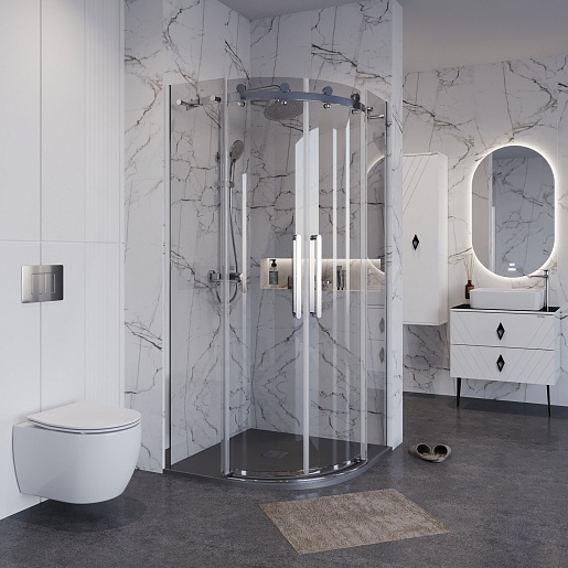 Grossman Душевой уголок Classic 90x90x195 четверть круга профиль хром стекло прозрачное