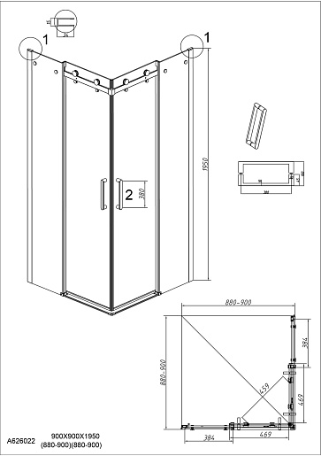 - Размер (ШxГxВ): 90 x 90 x 195 см.