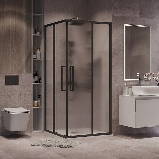 Душевой уголок Grossman Cosmo 100x100x195 профиль черный матовый стекло шиншилла - арт. 300.K33.02.1010.21.02.