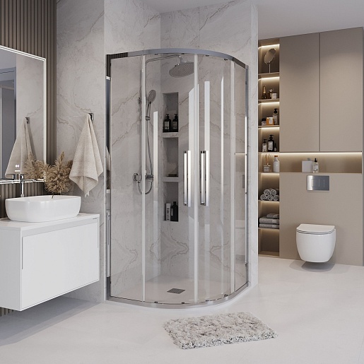 Grossman Душевой уголок Cosmo 80x80x195 четверть круга профиль хром стекло прозрачное