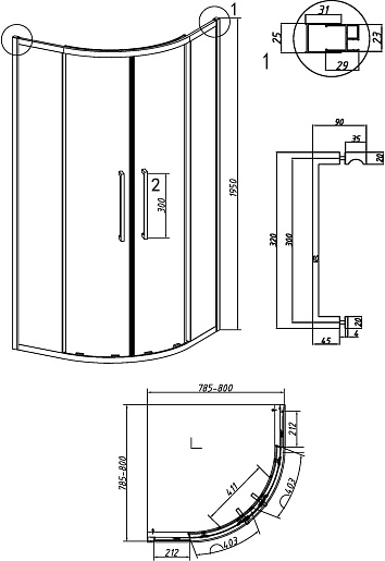 - Размер (ШxГxВ): 80 x 80 x 195 см.