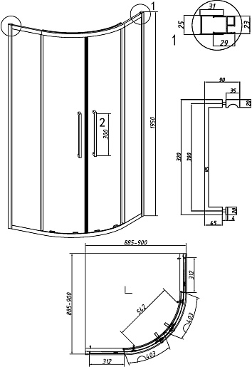 - Размер (ШxГxВ): 90 x 90 x 195 см.