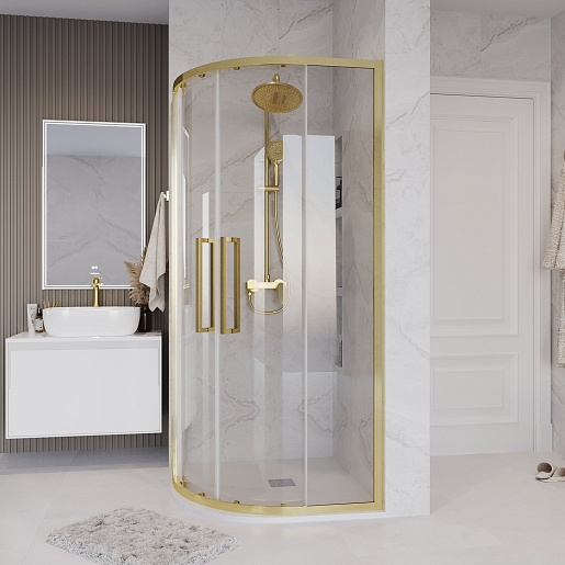 Grossman Душевой уголок Cosmo 90x90x195 четверть круга профиль золото сатин стекло прозрачное