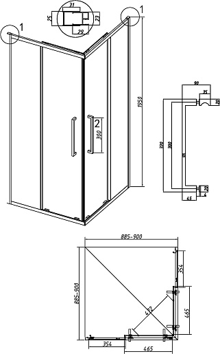- Размер (ШxГxВ): 90 x 90 x 195 см.