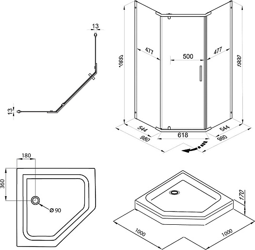 Triton Душевой уголок Дека-Блэк 100/100 Щ0000062933
