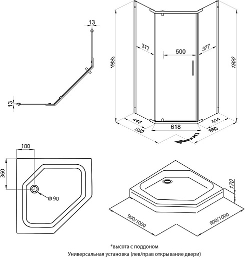 Triton Душевой уголок Дека-Блэк 90/90 Щ0000059782